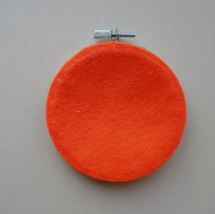 Materials: Wooden hoop, fabric, felt, glue, cord, cotton thread, and acrylic paints.