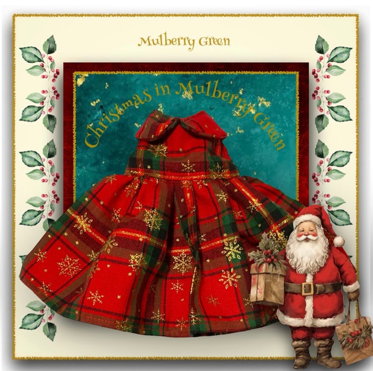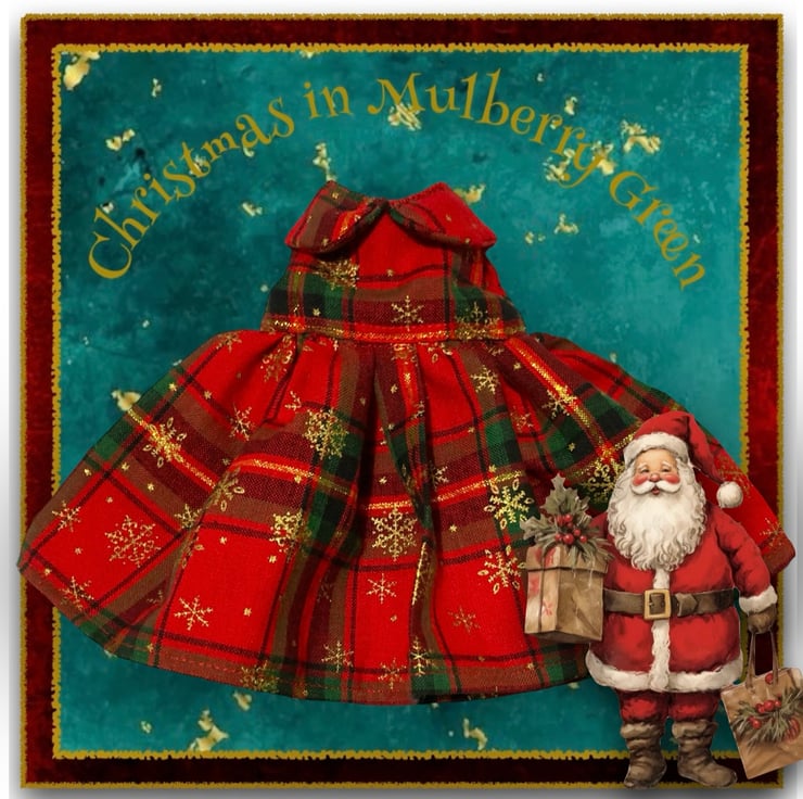 A gorgeous tartan Christmas dress overprinted with golden snowflakes. The dress is handmade from best quality cotton, has a lined bodice and fastens at the back with a little popper