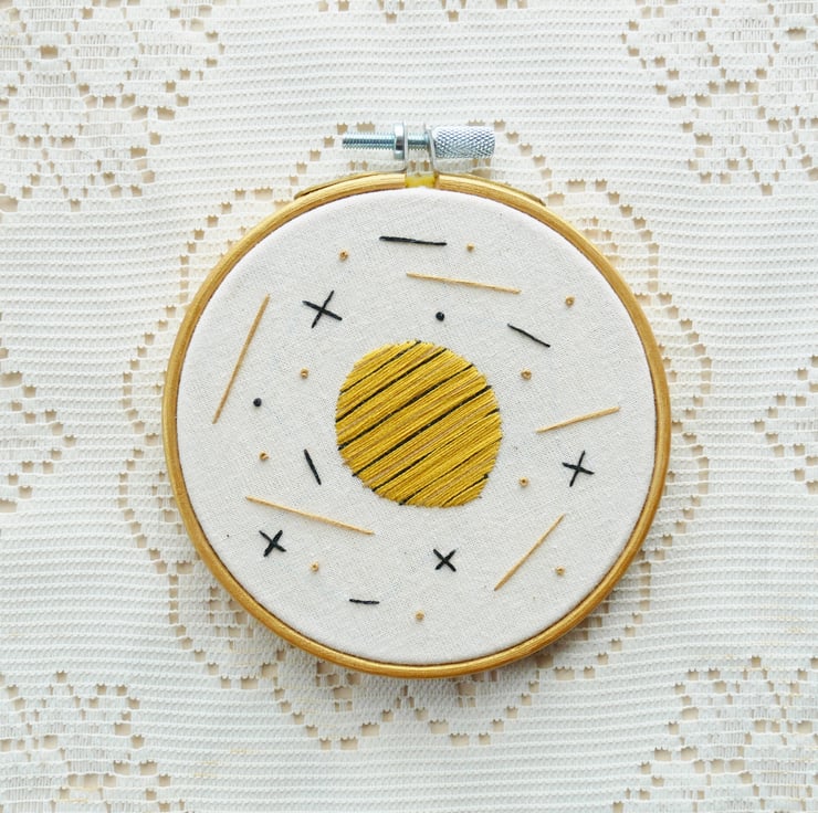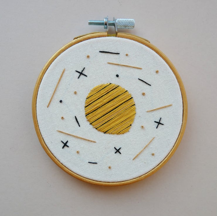 Space and Time - Yellow Planet 4 Inch Embroidery Hoop