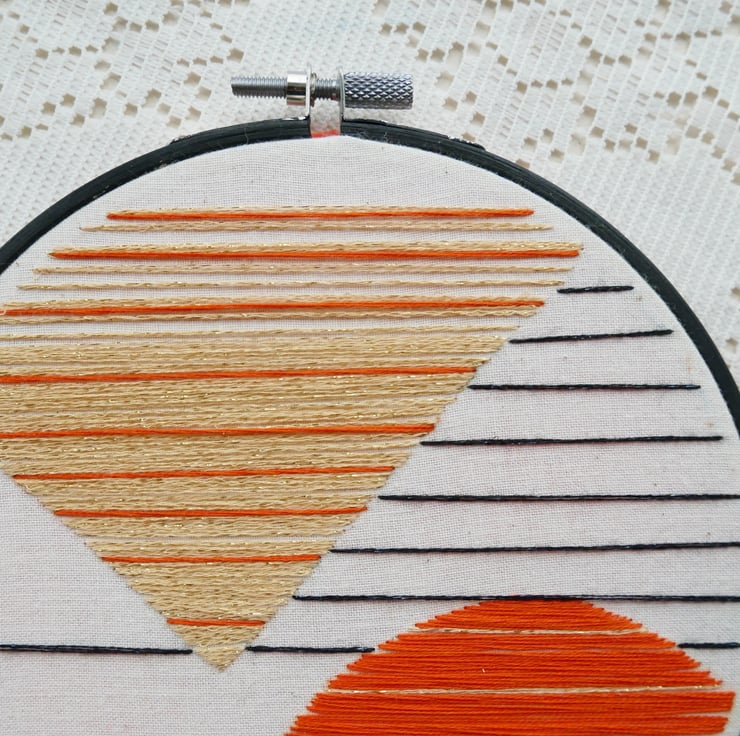 Distant Horizons - Orange, Black and Gold Abstract Embroidery Piece (SECONDS)