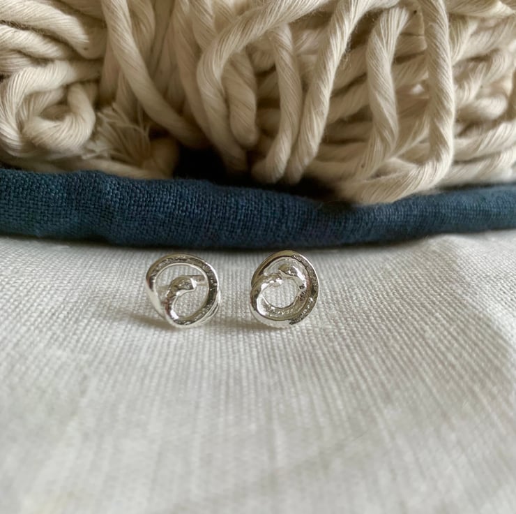 Individually handmade looped and coiled knit style stud earrings in solid recycled sterling silver, with silver posts and butterfly backs. presented on an earring card and gift boxed.