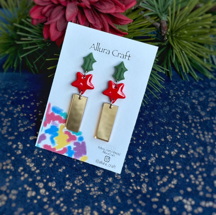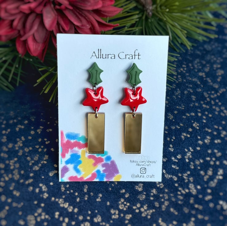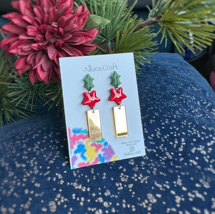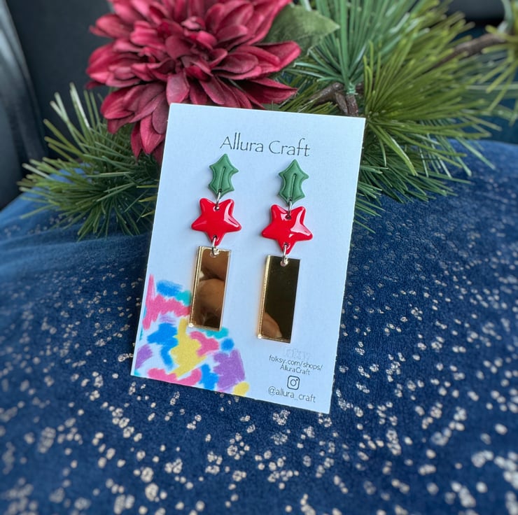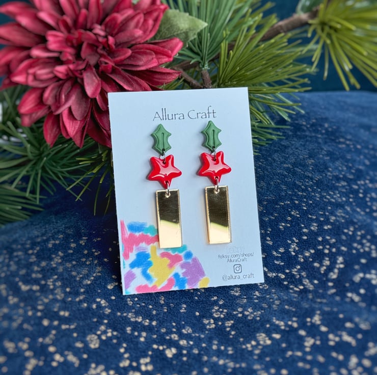 Naked and embossed Forest Green Holly stud top