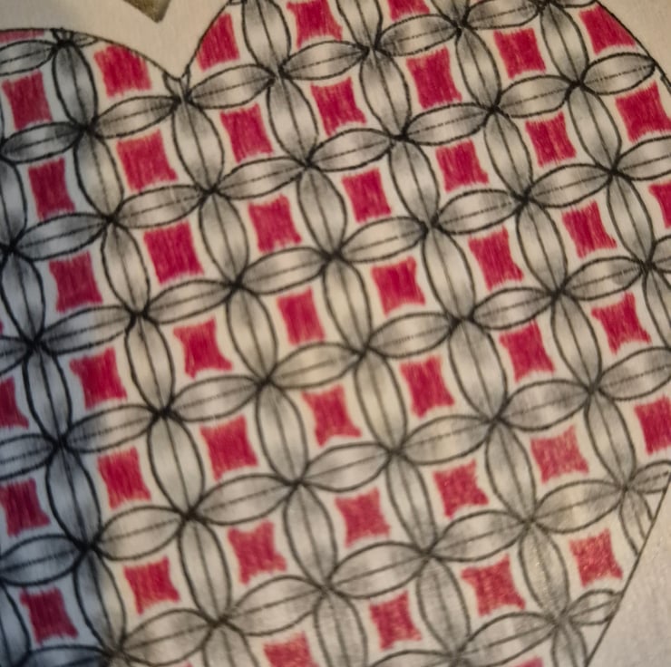 The design hand been hand drawn onto the wood using drawing pen and pencils.