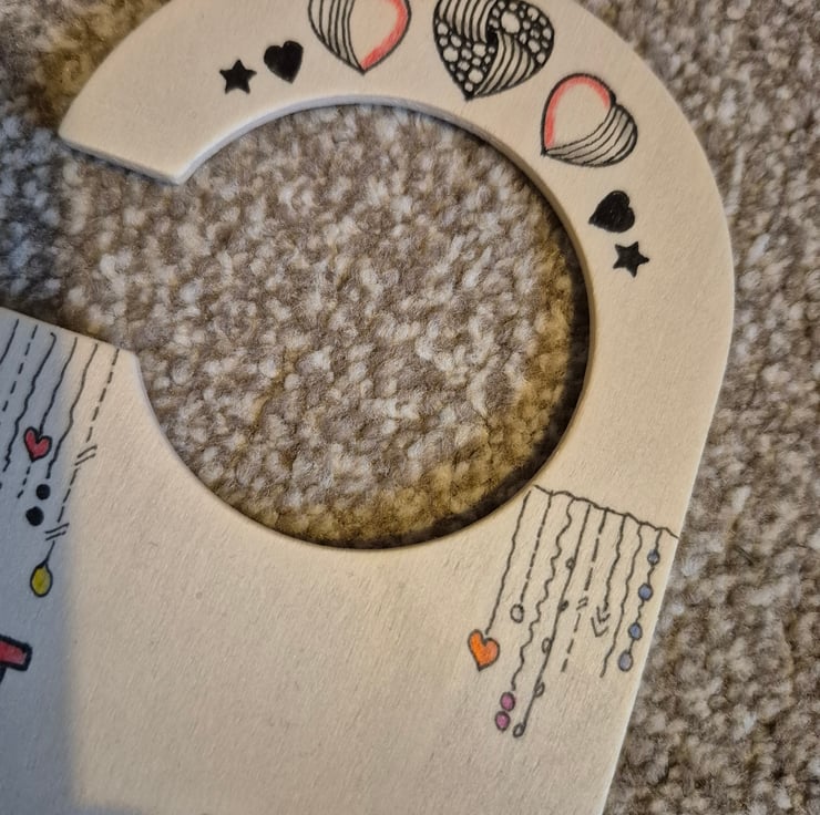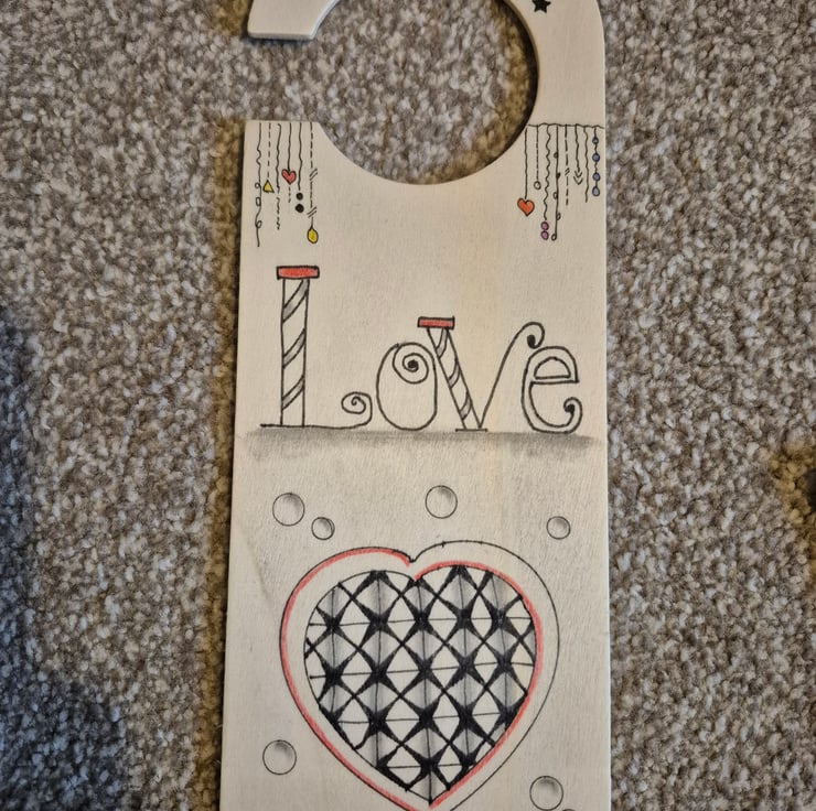 Beautiful hand drawn door hanger which is 24cms long.