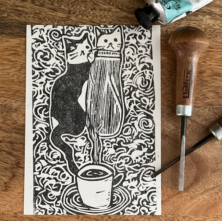 All my designs are hand carved and printed and as such each print will have slight variations.