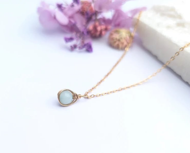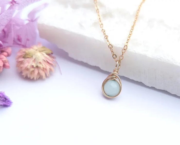 Delicate handmade 14K Gold Filled necklace featuring an amazonite natural gemstone bead. Designed with a minimalist touch, and perfect for layering. A simple lightweight necklace that is perfect for everyday wear. The colour of the stones varies from light to medium blue shade. This dainty necklace would make a lovely gift for yourself or a loved one.