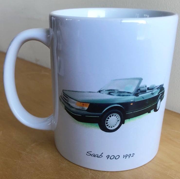 Saab 900 Convertible 1992 - 11oz Ceramic Mug for the Swedish Open Top Car fan