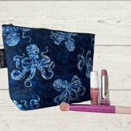 A layer of interfacing between the outer and lining gives the bag body and helps it to retain its shape, the bottom has been squared off so the bag stands up, and the bag is finished with a white zip.
