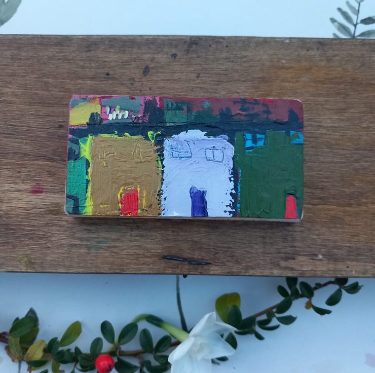 Oh so tiny, very sweet would even work in a dolls house. Oil painting on reclaimed wood which I sand. Hook on the back and signed. One off originals. I will wrap them mindfully and beautifully for you x