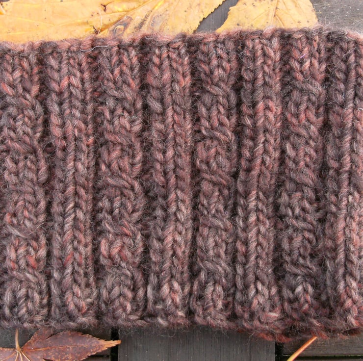 Very soft and warm these bands have plenty of stretch. This 70% wool blend has subtle variagated striping bands which give individuality to a main base colour.This new cabled design is simple but effective and will hold its shape well.