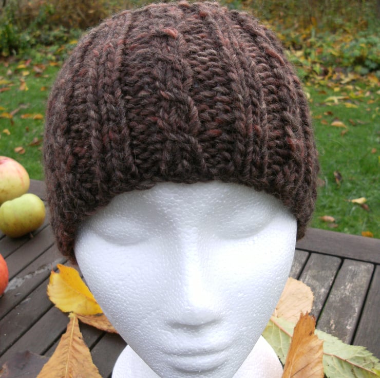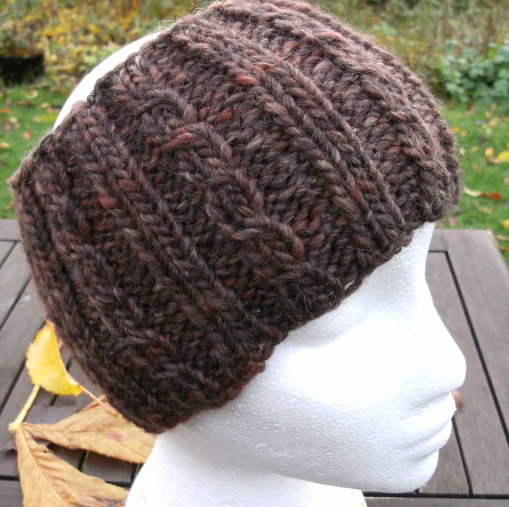 This head band is MEDIUM in BROWNS with an alternating cable/rib.