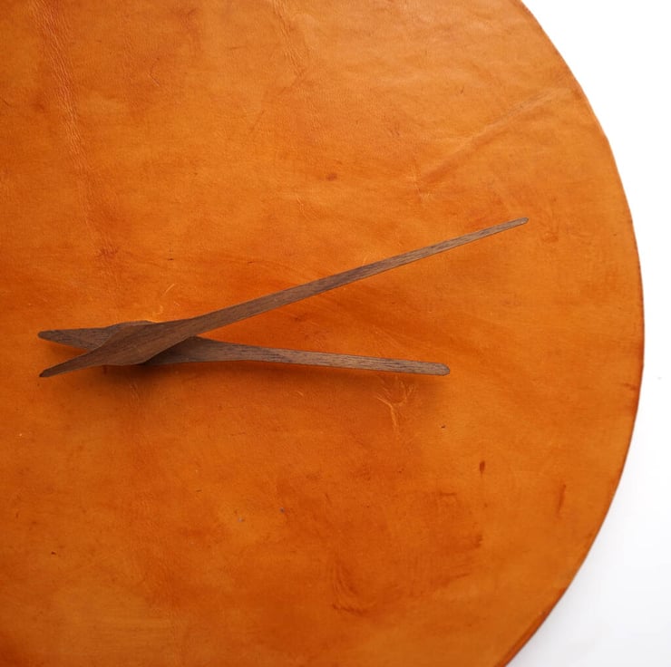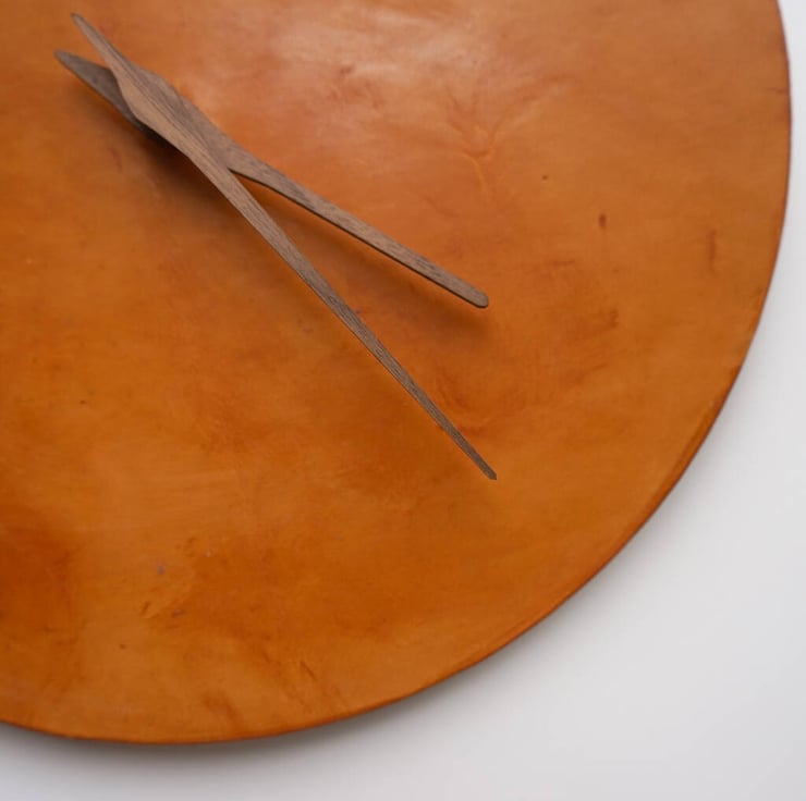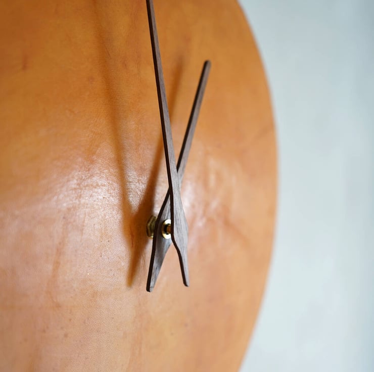 This timeless wall clock blends classic design with modern sophistication, crafted from premium vegetable-tanned cowhide. Its minimalist style exudes both simplicity and elegance, adding a refined touch to any space. Hand-cut and polished to perfection, the high-quality leather develops a unique patina over time, enhancing its character. The warm, natural tones of the leather provide a calming, elegant presence, effortlessly complementing any interior while bringing subtle yet lasting beauty to your decor.