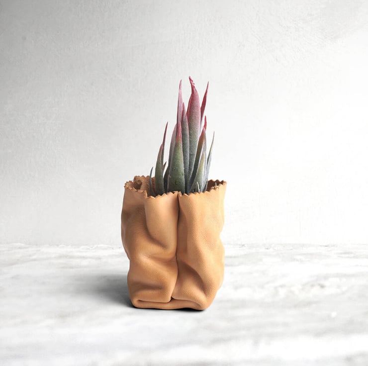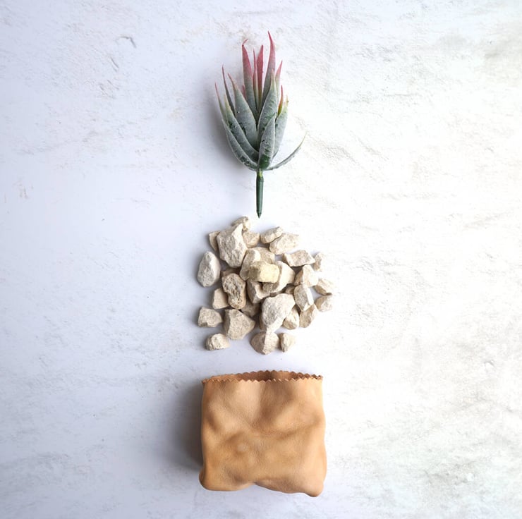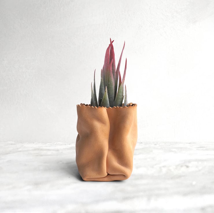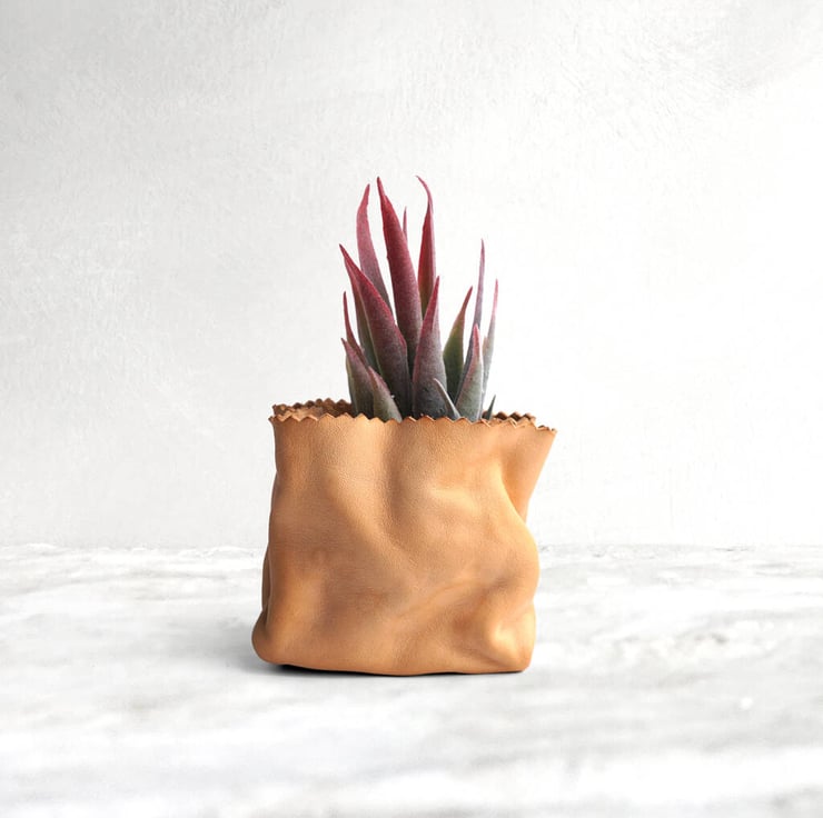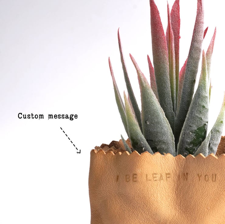 Transform your space with our Leather Paper Bag Planter, a chic, modern twist on the classic paper bag look. Made from high-quality cowhide, this unique planter offers a stylish blend of sophistication and whimsy. Complete with your choice of an artificial Aloe Vera or Round Leaf Vine (bendable), plus decorative gravel, it’s the perfect maintenance-free addition to any room. Whether as a thoughtful gift or a standout piece for your home or office, this planter can be further personalized with custom engraving to make it truly one-of-a-kind.