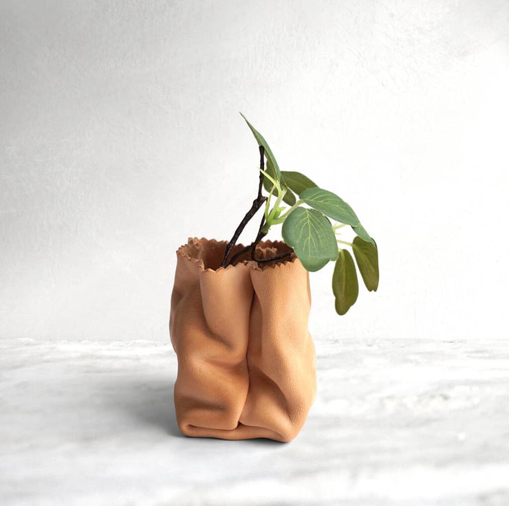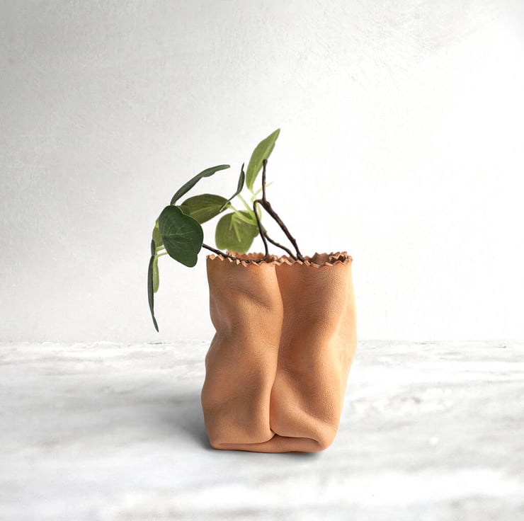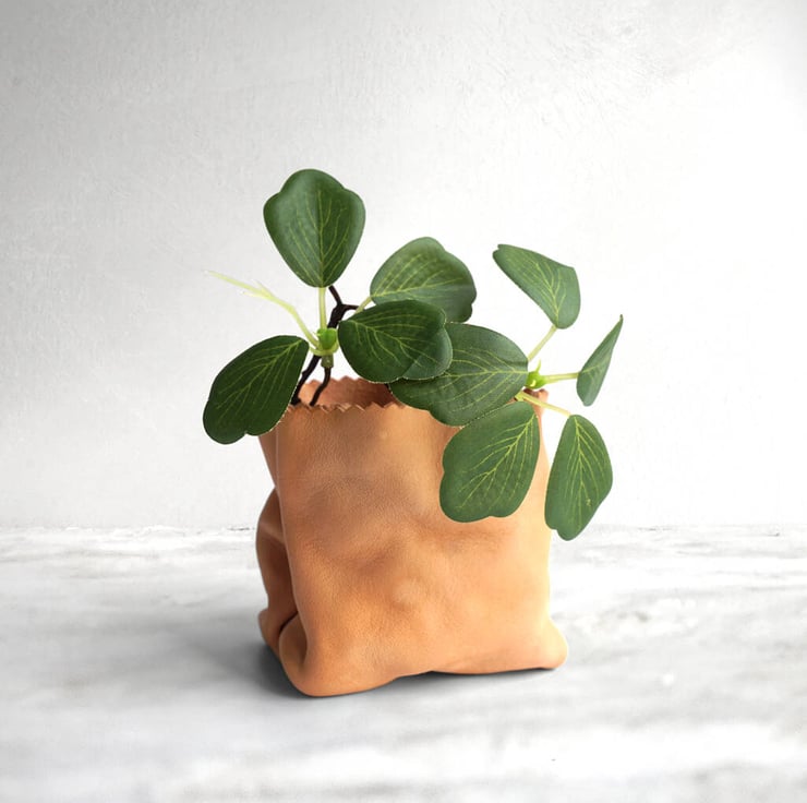 Introducing our stylish Leather Paper Bag Planter—a clever, chic twist on the classic paper bag design. Made from high-quality cowhide, this unique planter combines elegance with a touch of playfulness, perfect for adding character to any space.