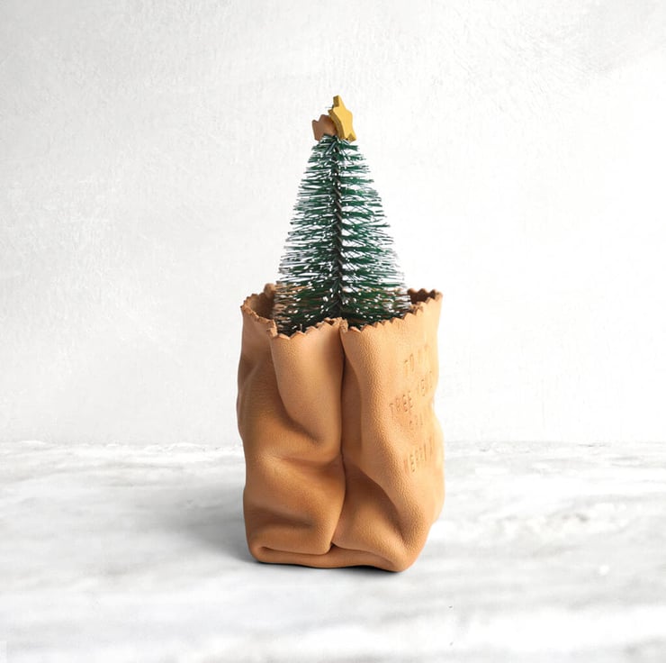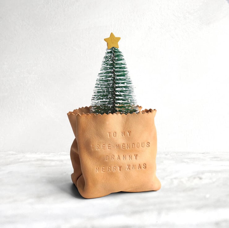 This luxurious cowhide leather planter is the perfect blend of elegance and festive cheer. Crafted from premium leather, it’s designed to age beautifully, gaining character over time. Inside, you'll find a charming mini Christmas tree, adding a seasonal touch that brightens any space. Ideal for holiday gifting, it also comes with free message engraving, allowing you to personalize it for that extra special touch. A unique and thoughtful gift, this planter brings both beauty and practicality to your holiday decor.