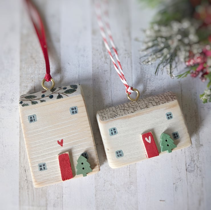 I have chosen two houses that compliment each other for this little set. Hang them together or give one as a gift!