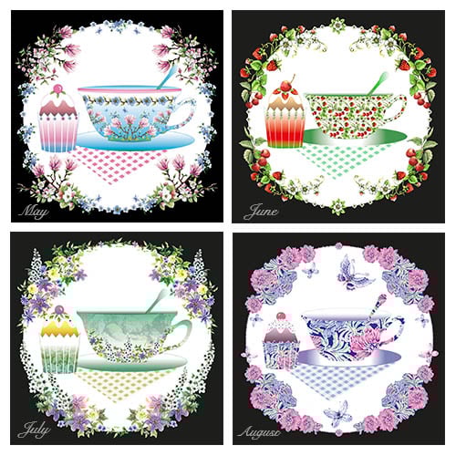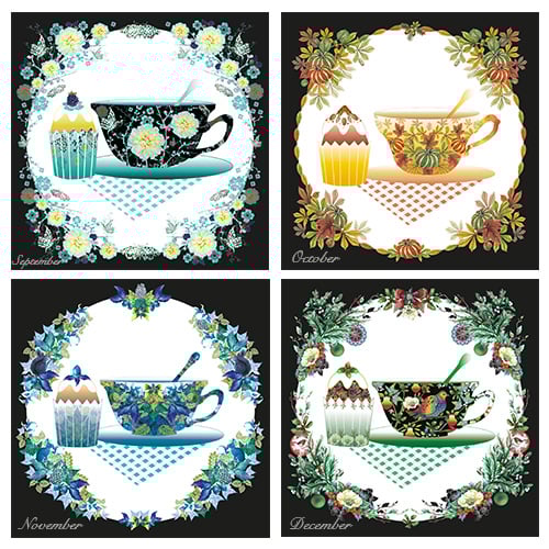 Looking for the perfect desk calender to keep you upto date? This free standing compact calender has 12 different designs one of each month. All these designs feature beautiful decorative china cups with a scrumptious muffin all set on black for impact.