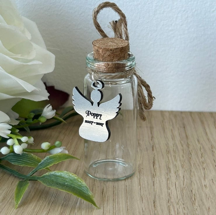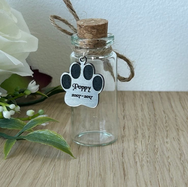 Personalised Pet Dog Paw Hair Memorial Gift glass bottle, Glass vial for hair fu