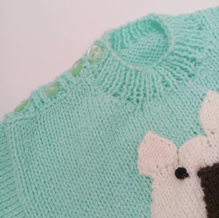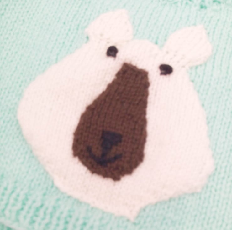 A lovey hand knitted round neck jumper, with a polar bear motif, for children up to 3/4 years made using double knitting yarn. It is in stock in the pale green colour shown with the white and brown polar bear motif in a size to fit a 0 - 3 month old with a 16 inch chest. It can also be made for you in a size and colour of your choice. Please see below for the available sizes and prices and state the colour required when you order. Please allow approximately 2 weeks processing time for the jumper to be made and posted to you.