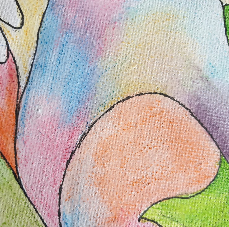 This piece has been created using a mixture of watercolour pencils and paint in beautiful pastel shades. The image was hand drawn then coloured.