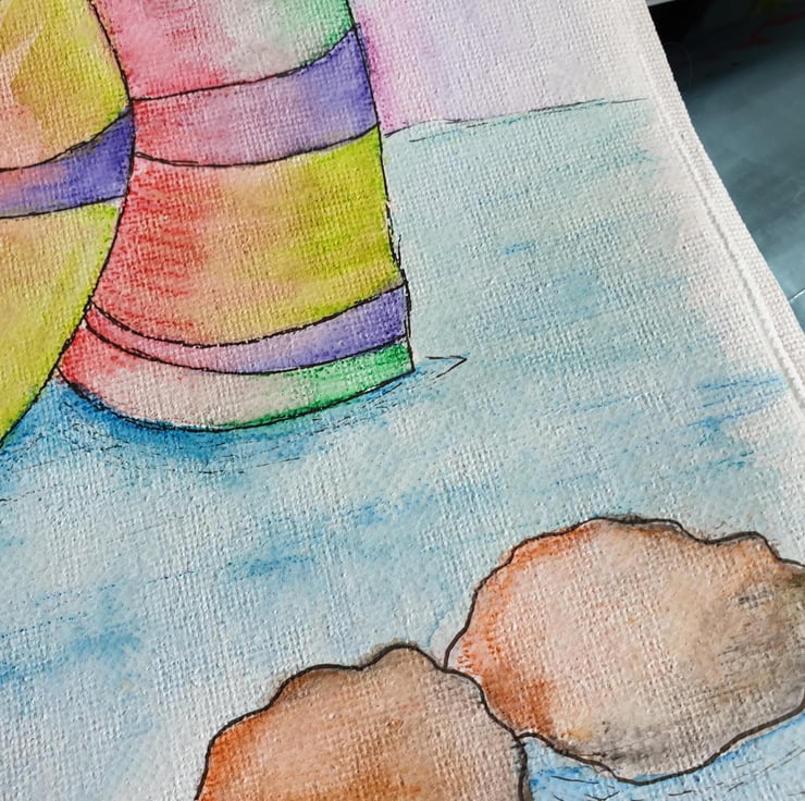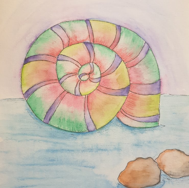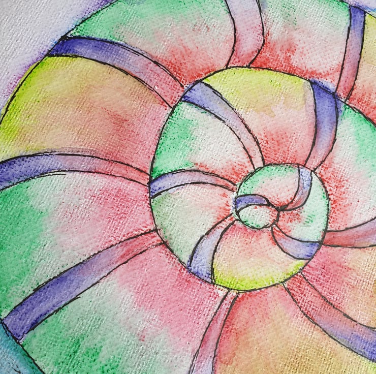 This piece has been created using a mixture of watercolour pencils and paint in beautiful pastel shades. The image was hand drawn then coloured.
