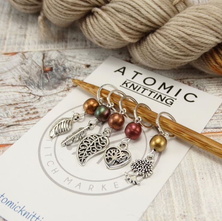 Set of 5 mixed glass bead and charm stitch markers
