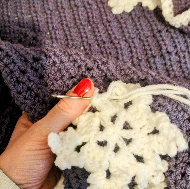 We rarely get snow here in Dorset but when we do it's always super exciting. As a child, I remember some amazing snow days, where I went sledging with my brother. I still love snow - and snowflakes, and wanted to come up with a design for a winter themed blanket that would look gorgeous in a pushchair or pram when out for winter walks and this is it! Coincidentally, just as I was making the snowflake applique for this, it actually did snow and made the whole making even lovelier!