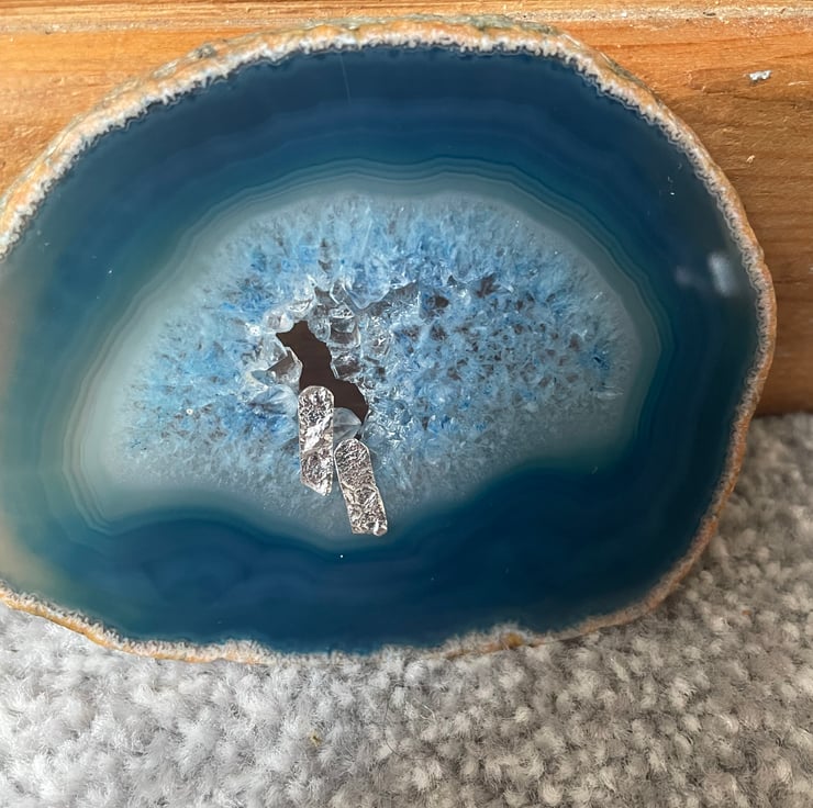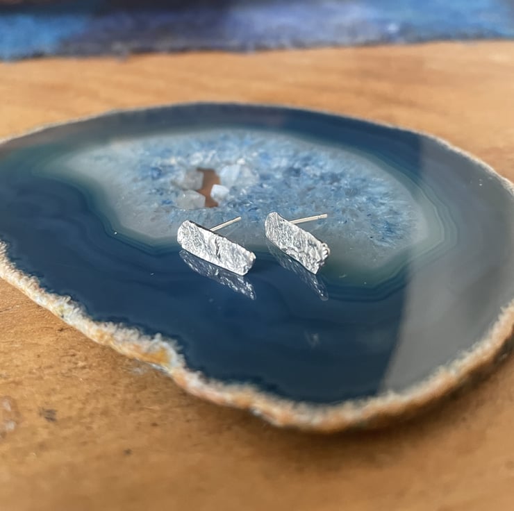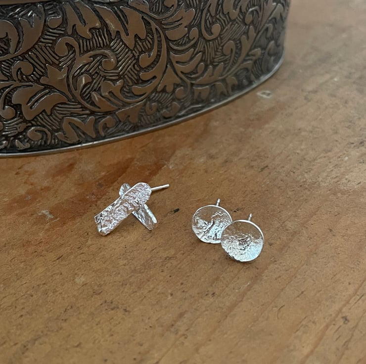 These little studs have been cut from a piece of reticulated metal in an organic/rectangular shape. They catch the light perfectly for that extra wee bit of festive sparkle!