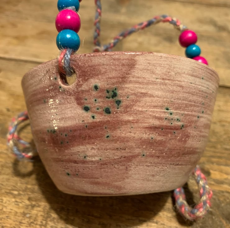 Lovely little hand thrown hanging pot.