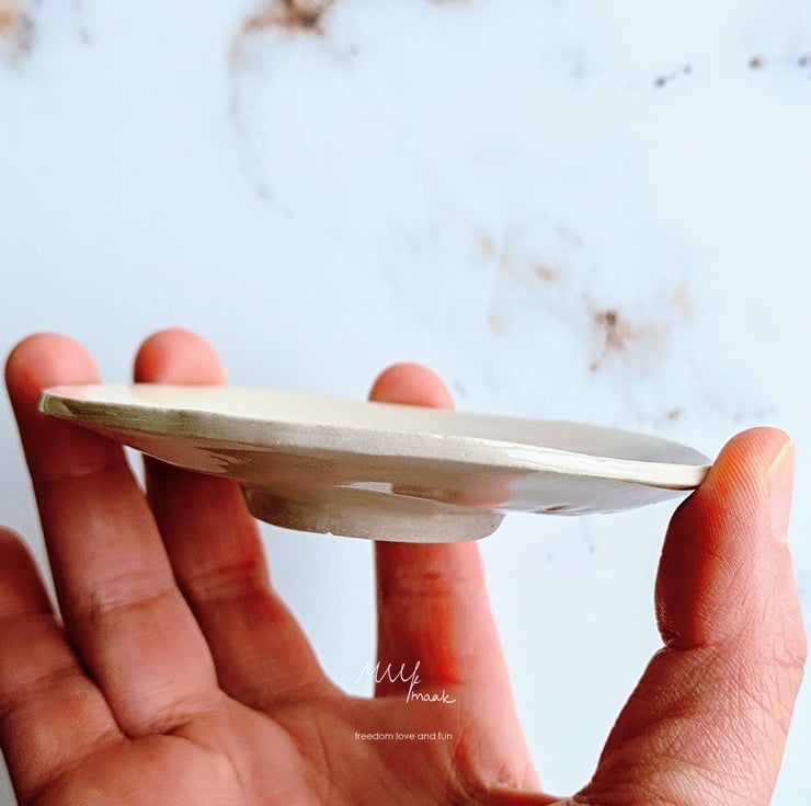 It was meant to be a side or support item for our chopstick rests, that's why the materials and process involved were meant to be dinnerware safe. However, it just felt more likely to be a ring dish when I put it on my desk.