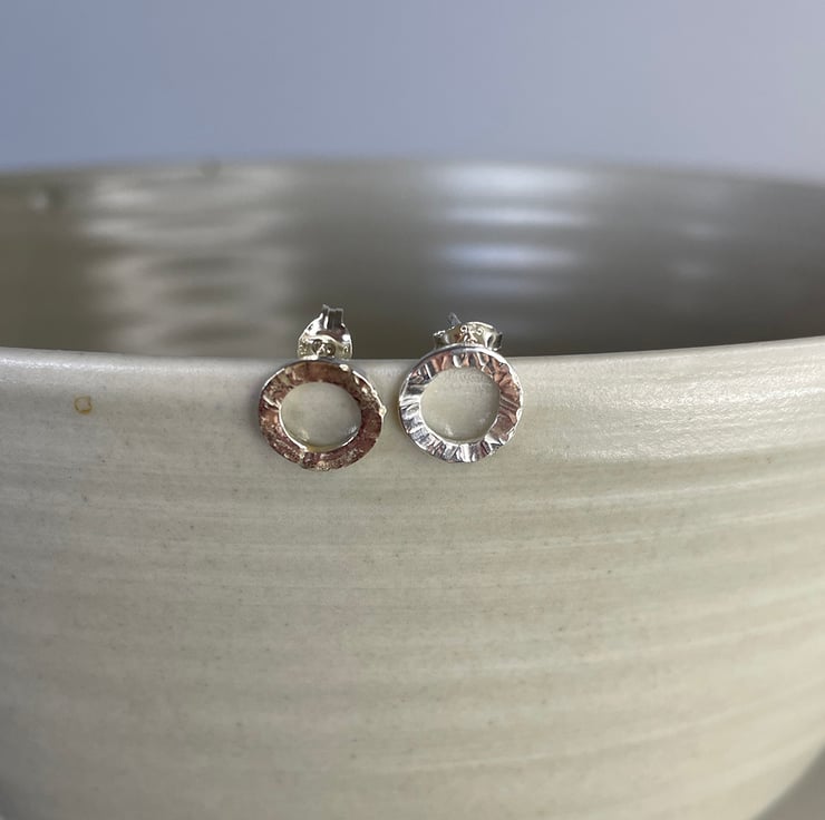Sterling silver tiny circle hammered bark texture post earrings