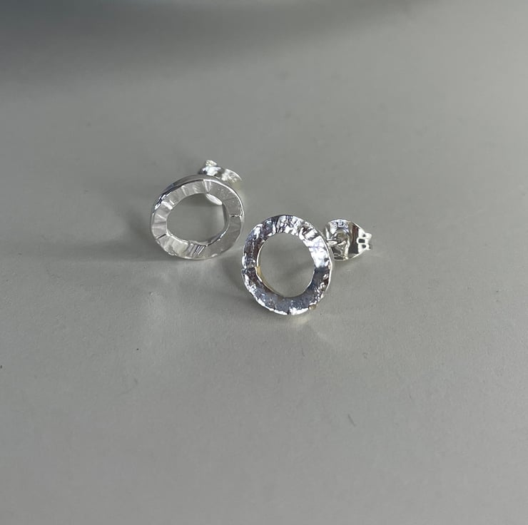 For the best in everyday wear, the tiny circle post earrings have to be on your wish list. Petite 10mm circles of recycled Sterling silver with organic bark effect textured hammered onto the surface. Perfectly propositioned is size and style - pick up your pair today.