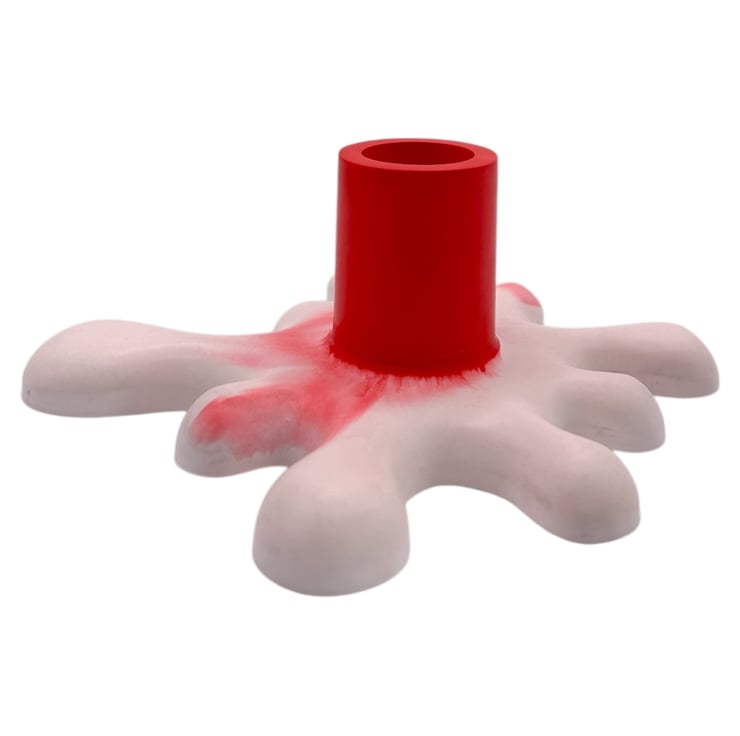 This unique splat-shaped candlestick is made from a premium British plaster known as Crystacast. With a dense, smooth, and luxurious finish that resembles marble, it has a lovely weighty feel. The modern design features a red holder that appears to have melted into the white base, making each candlestick a one-of-a-kind work of art.