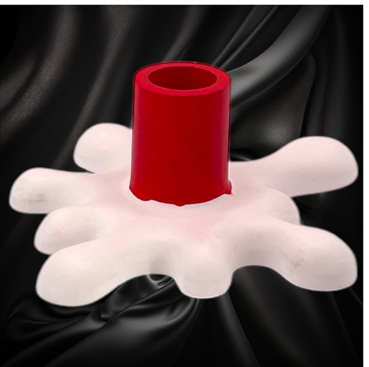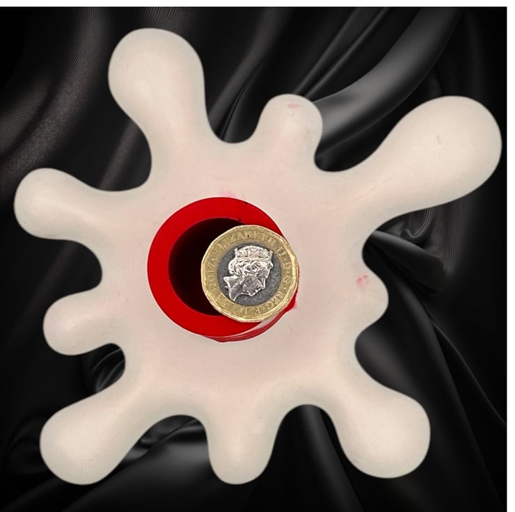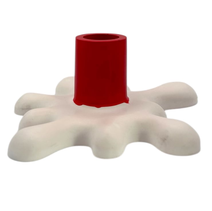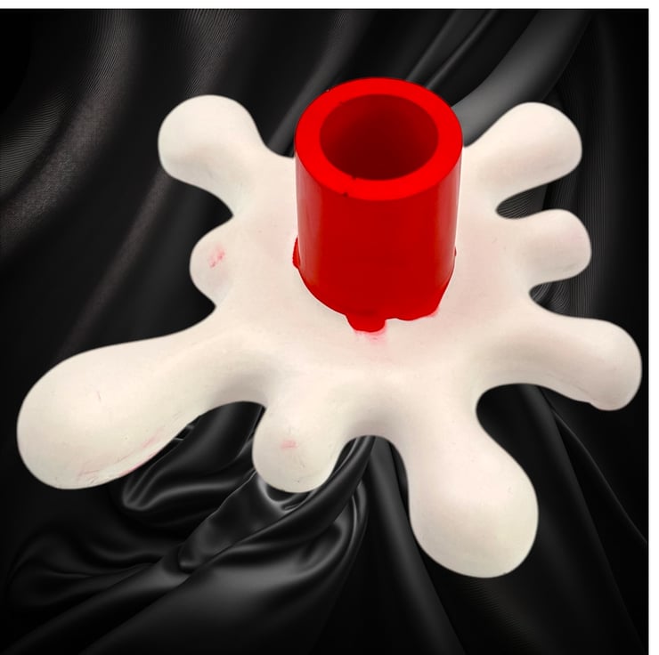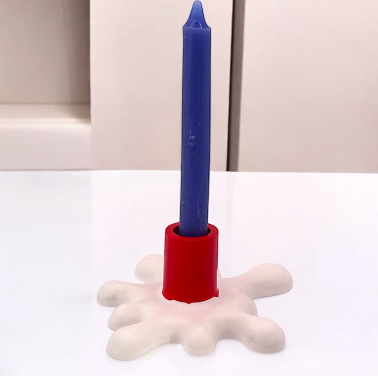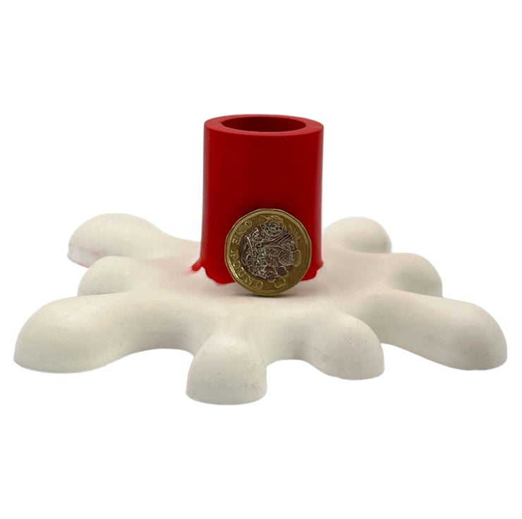 This unique splat-shaped candlestick is made from a premium British plaster known as Crystacast. With a dense, smooth, and luxurious finish that resembles marble, it has a lovely weighty feel. The modern design features a red holder that appears to have just started melting into the white base.