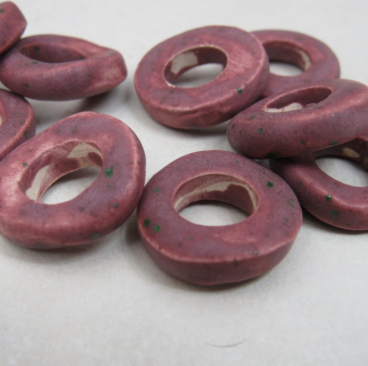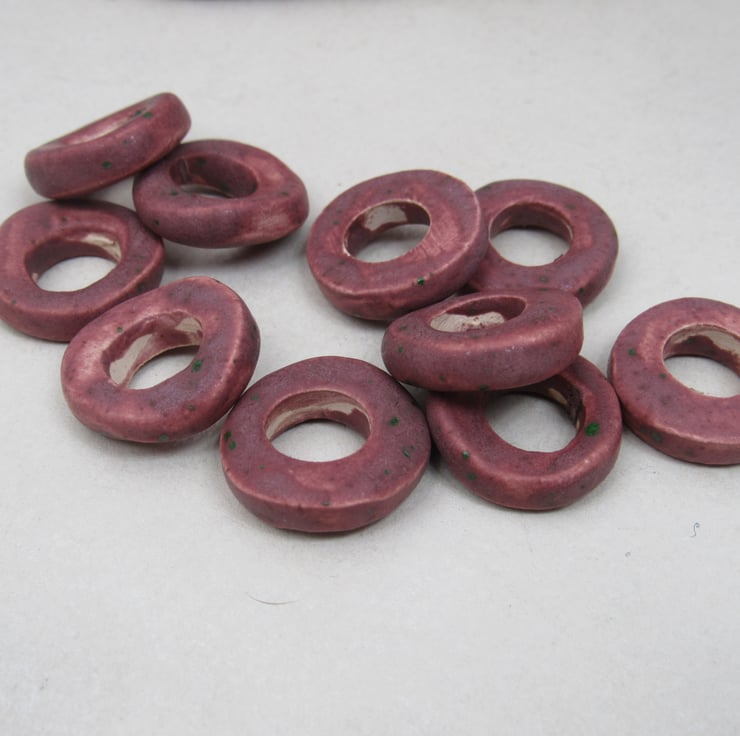 10 Medium Damson Purple Glazed Ceramic Donut Beads