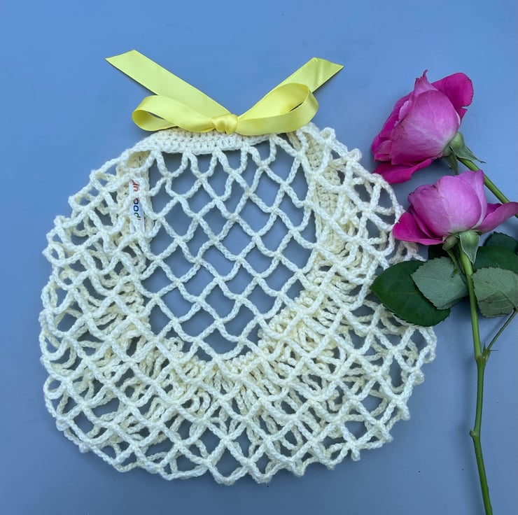 I do make some cotton ones but mainly they're super-durable acrylic yarn so they can be flung in the washing machine or hand wash it in the sink if you prefer. If you're a flinging in the machine girl I'd use one of those net bags just to be on the safe side.
