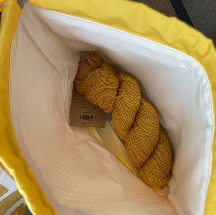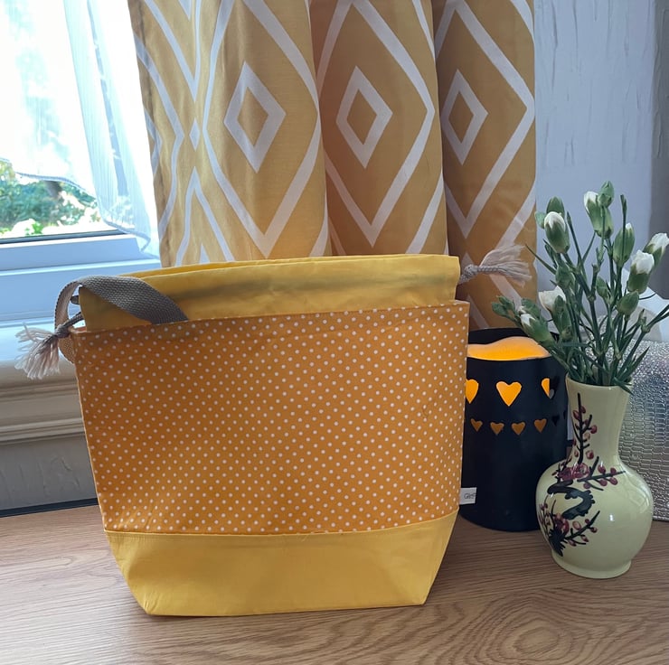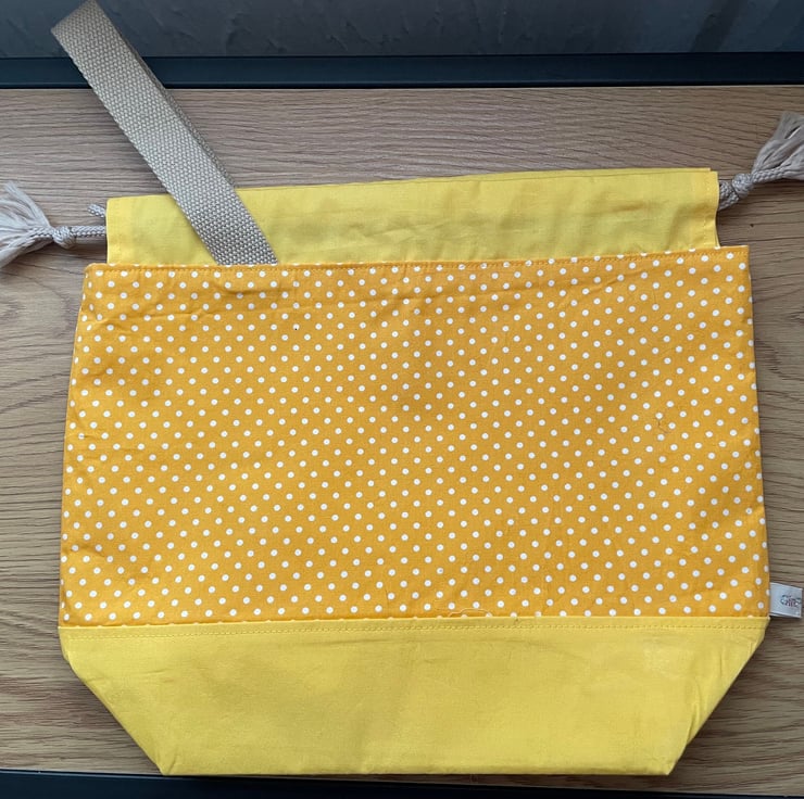 Drawstring project bag for knitting, crochet, embroidery - Medium - dotty yellow