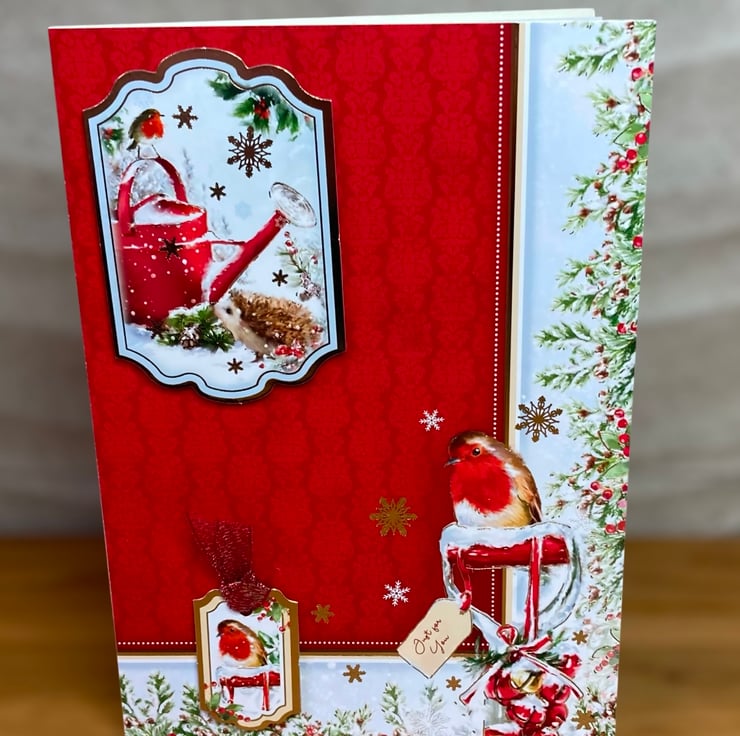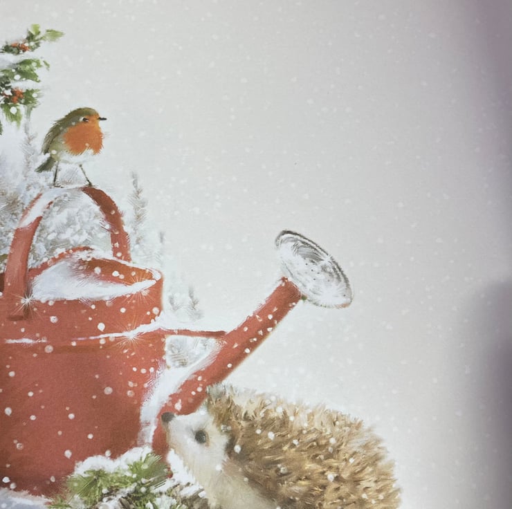 This luxury Christmas card features a Robin and Hedgehog in a lovely snowy scene.