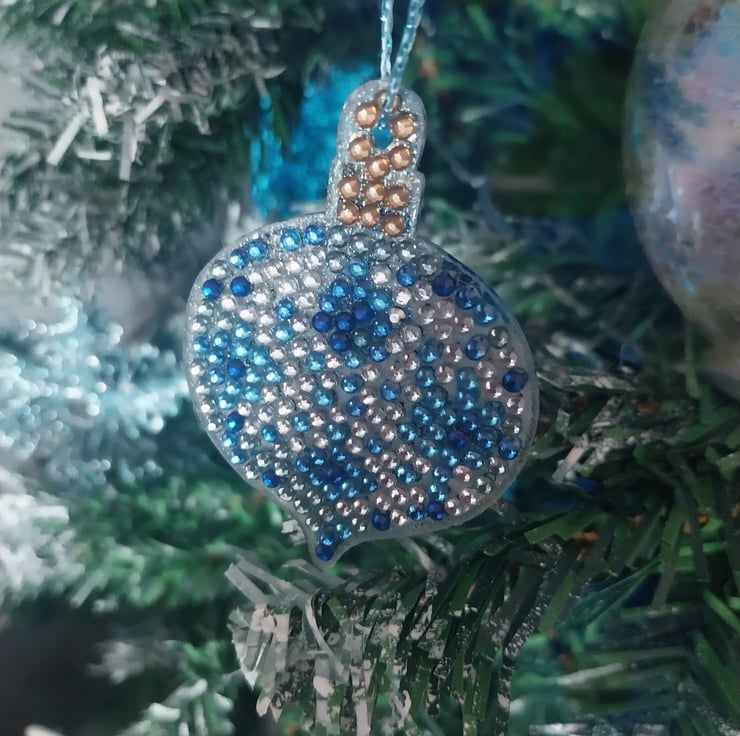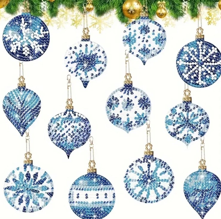 Festive Diamond art snowflake set of 12 Christmas tree decorations.