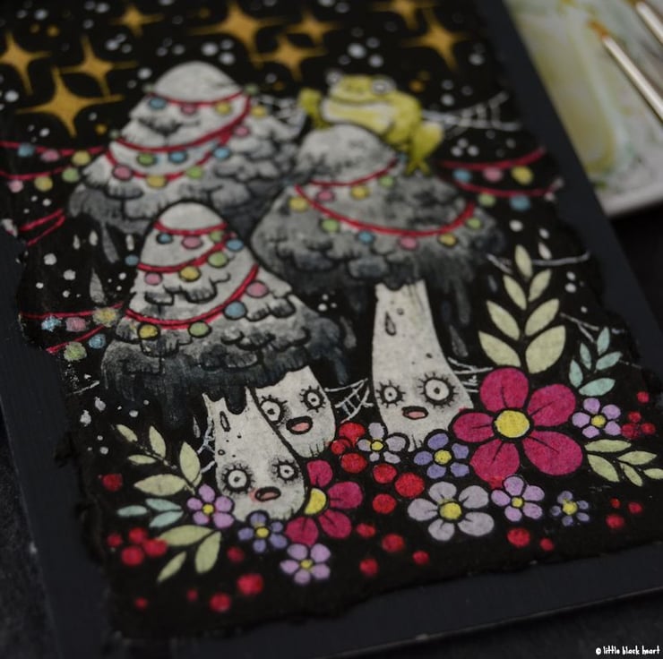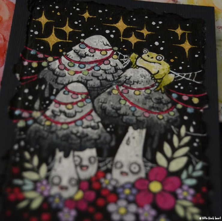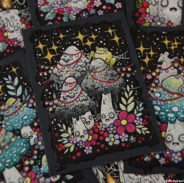on the second day of creepmas, my true love sent to me: 4 festering festive murderous mushrooms, all decked out in sparkling lights and fancy decoration! who needs christmas trees anyway.