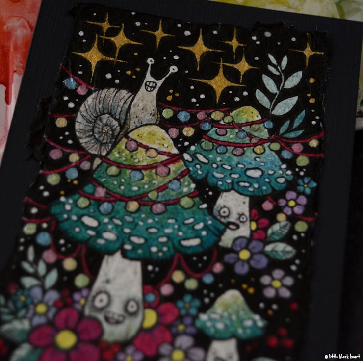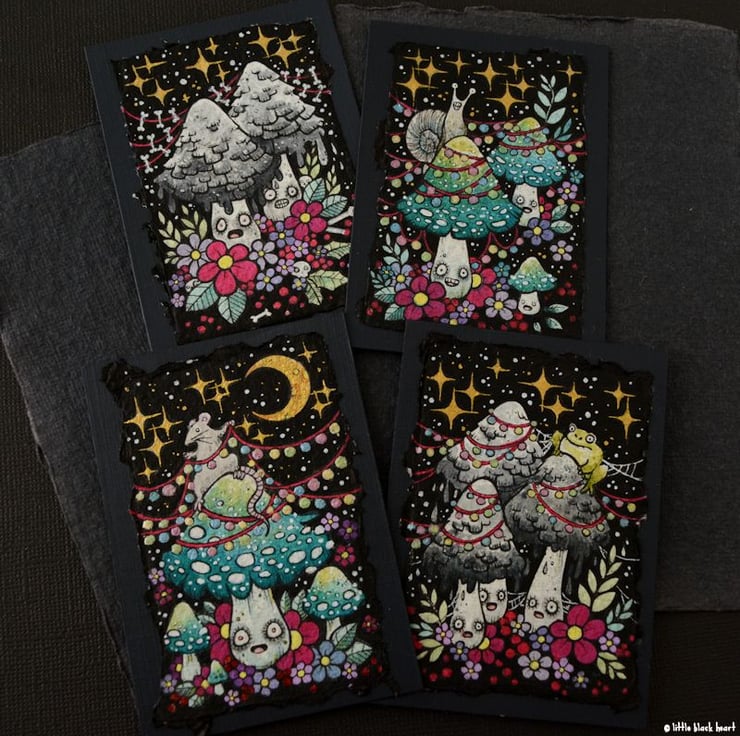 on the second day of creepmas, my true love sent to me: 4 festering festive murderous mushrooms, all decked out in sparkling lights and fancy decoration! who needs christmas trees anyway.