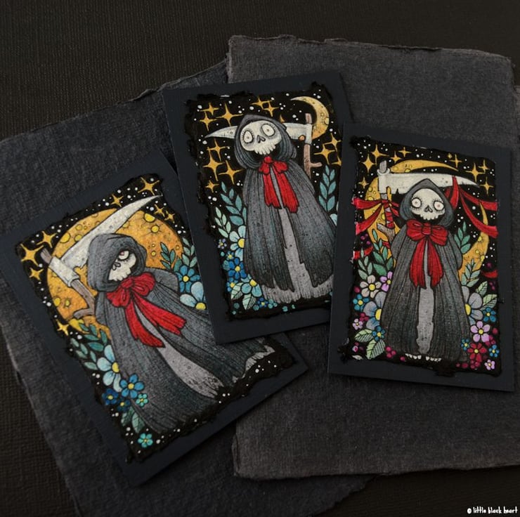 on the third day of creepmas, my true love sent to me: 3 festive reapers! they look ready for some fun and frolicking, don't they?