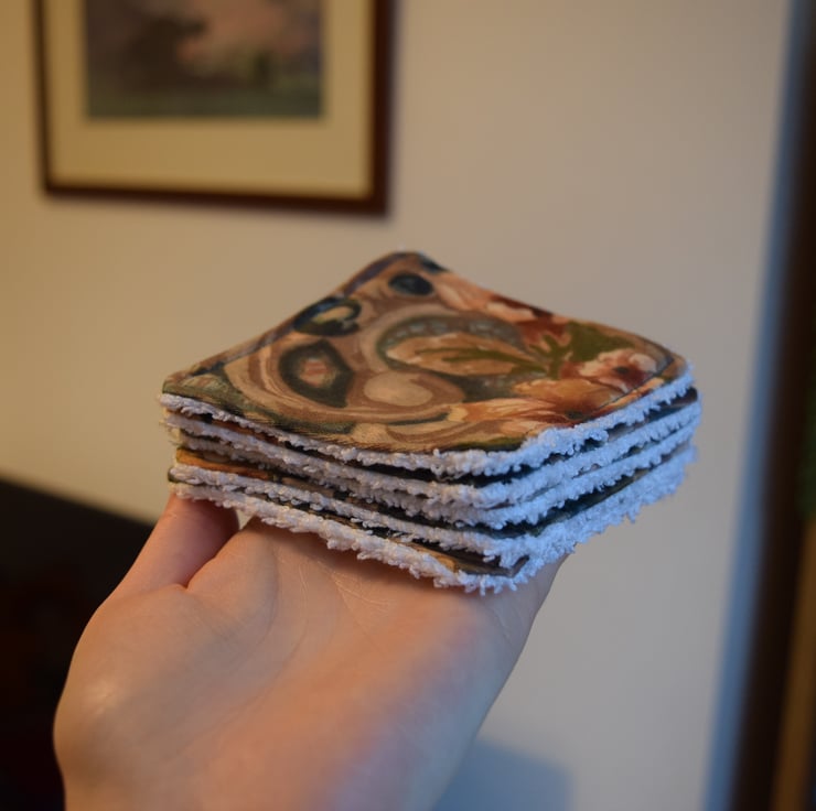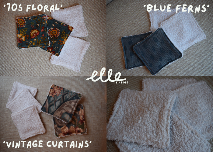 Made from scrap cotton and cotton/bamboo cloth, they are the perfect addition to your washbag. They can be used to help remove makeup, apply toner or as a tiny washcloth for those tight on luggage space!