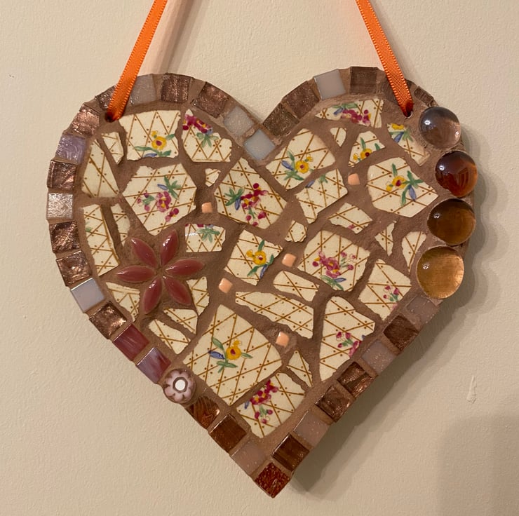 Inspired by the pretty vintage plate that makes up the majority of the heart’s design.