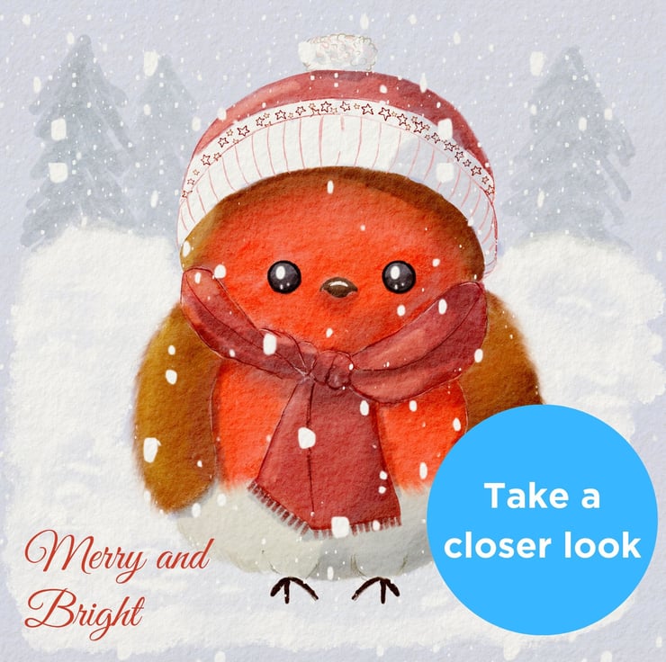This cute robin in the snow, wrapped in a hat and scarf, with fluffed out feathers to keep out the cold will bring festive cheer to your little one this Christmas. Perfect for under fives.