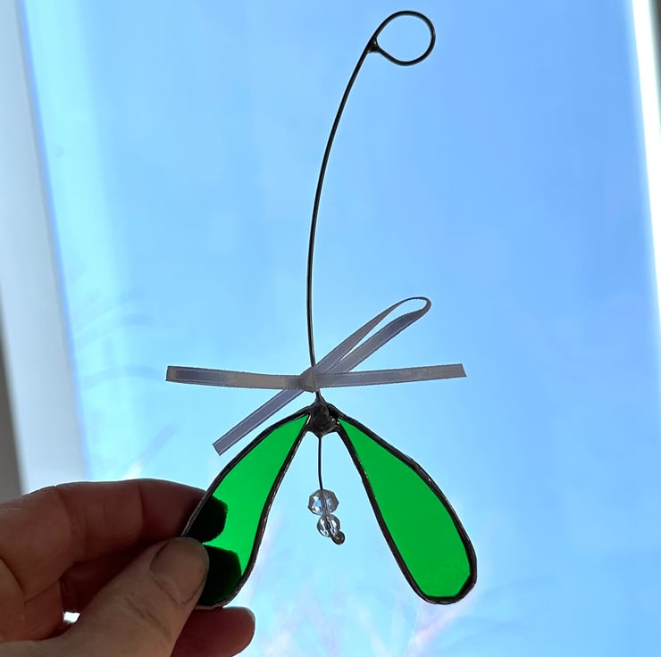 Mistletoe sprig made in stained glass by Carole’s Glass.