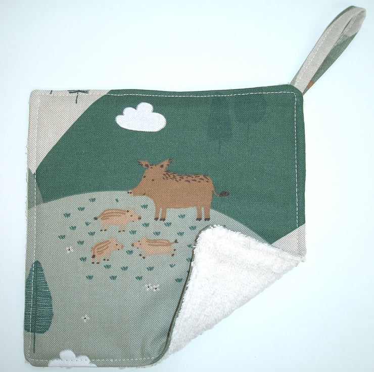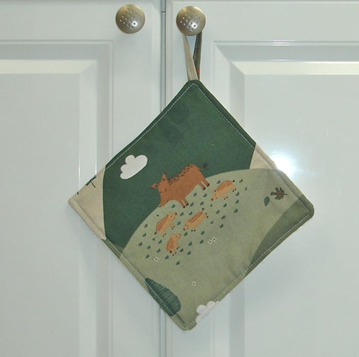 A Pot Holder backed with a cream towel fabric - useful for mopping up around the kitchen,