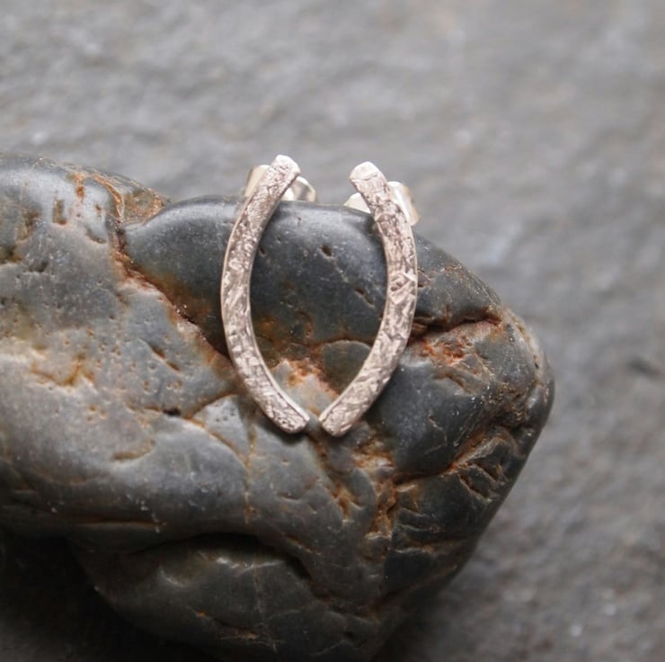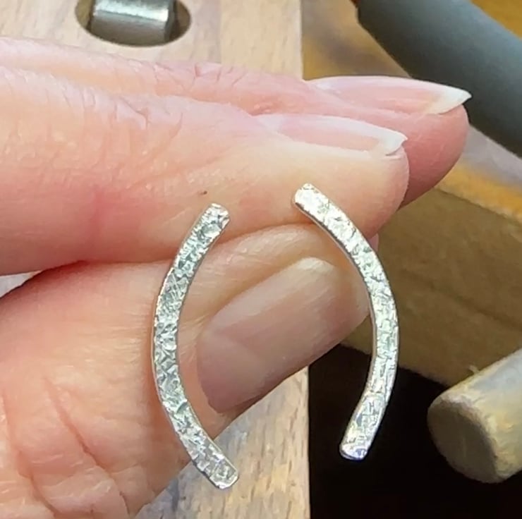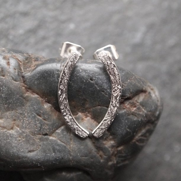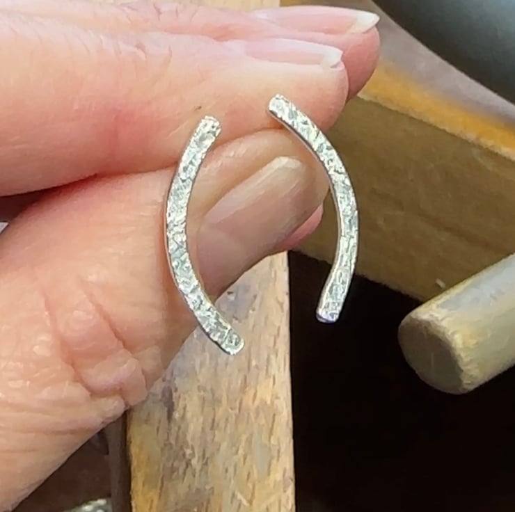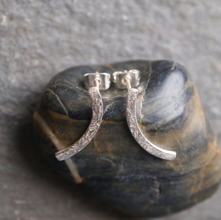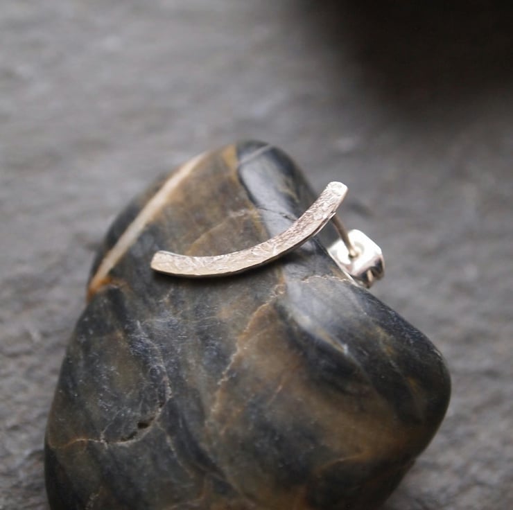 Handmade arc earrings, silver jewellery, hammered silver arc stud earrings.