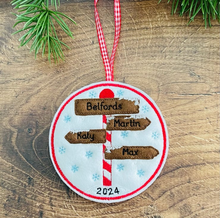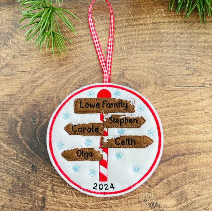 Add all your family names on this fun North Pole Sign. You can have a Surname on the top space and then up to 6 names Underneath. A great way to include all the family on one decoration.