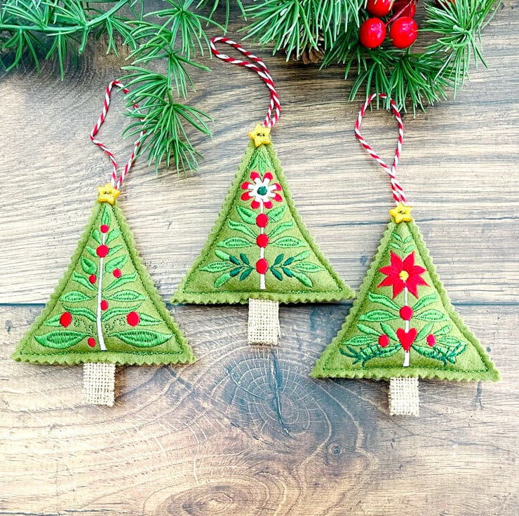 These Folk Art Embroidered Christmas Trees make a gorgeous addition to your Christmas tree or around your home. They would also make original gift decorations.